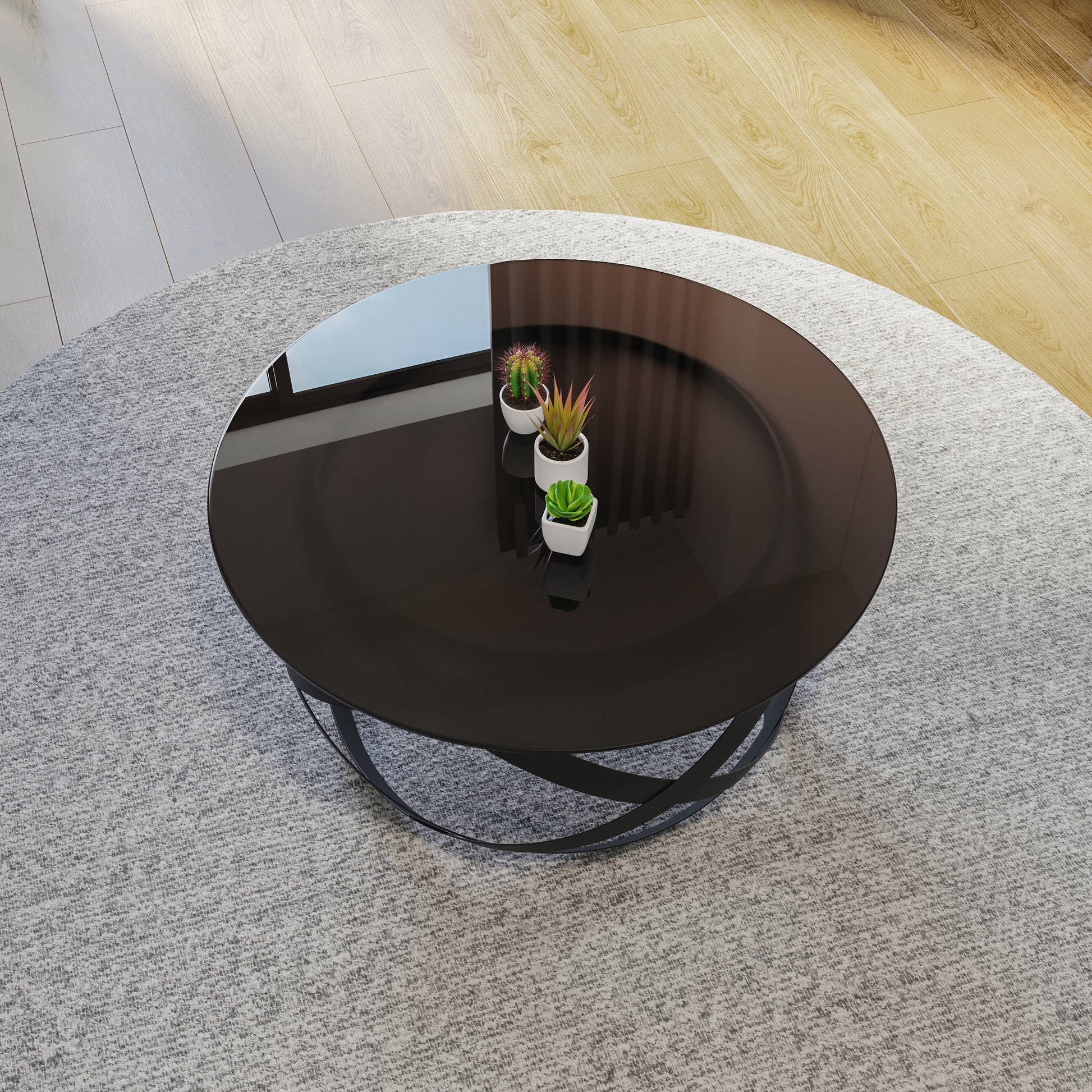 Lumarc Firenze, Tavolino da Salotto fatto a mano in Vetro Temperato e Acciaio dal Design Moderno Industriale Minimalista, Nero, Rotondo, Ø70x40 cm