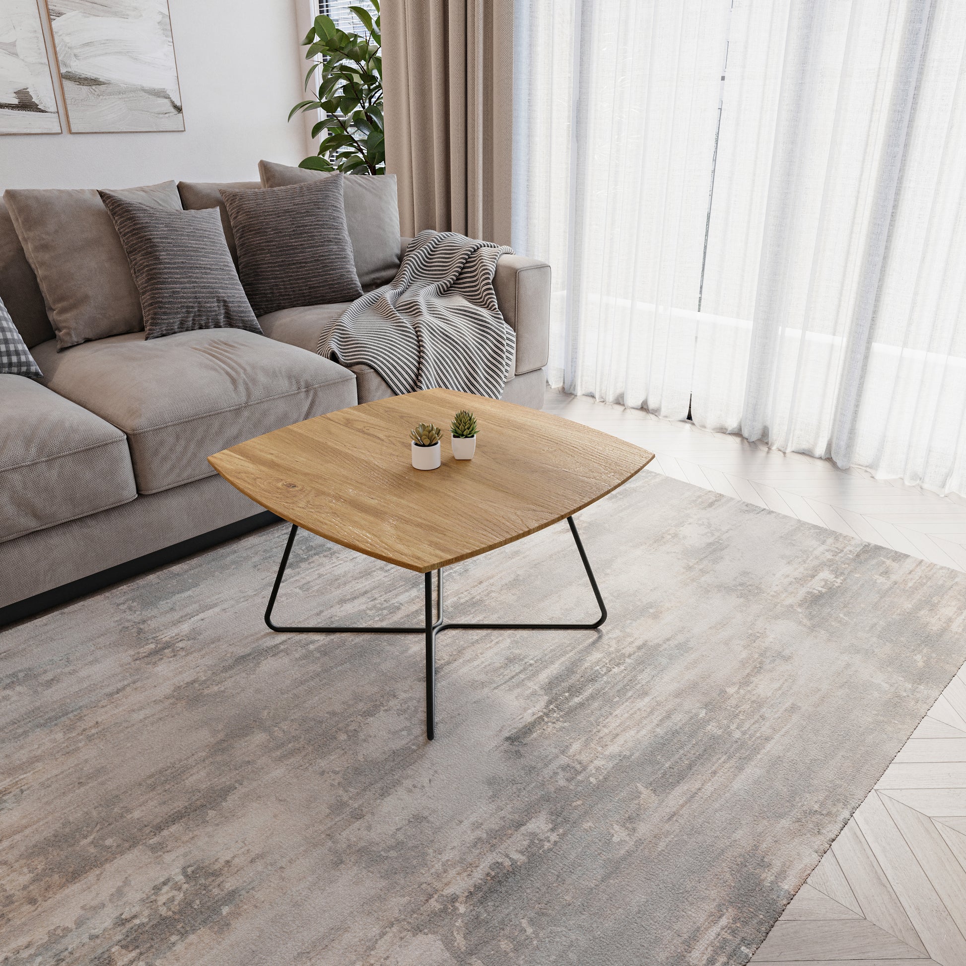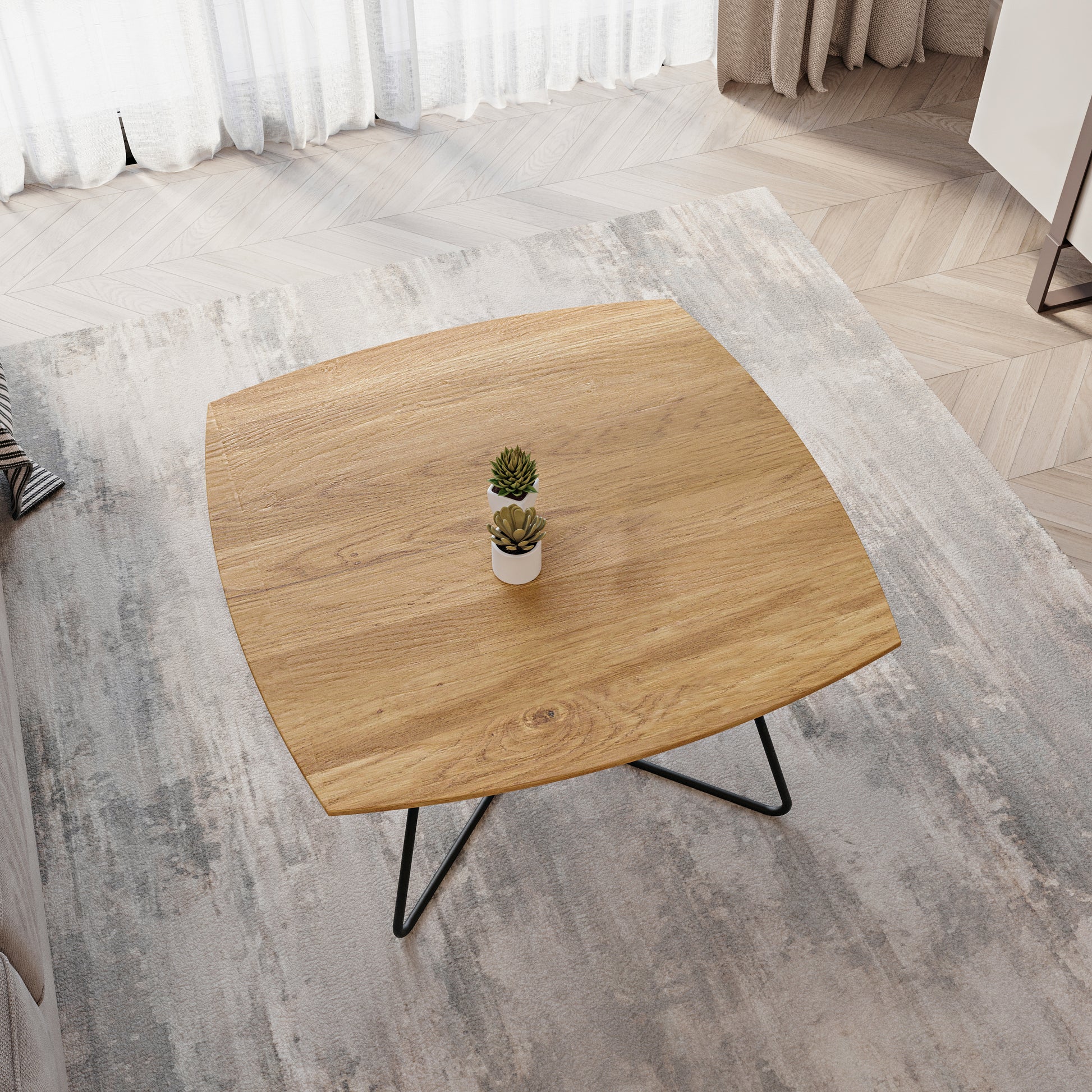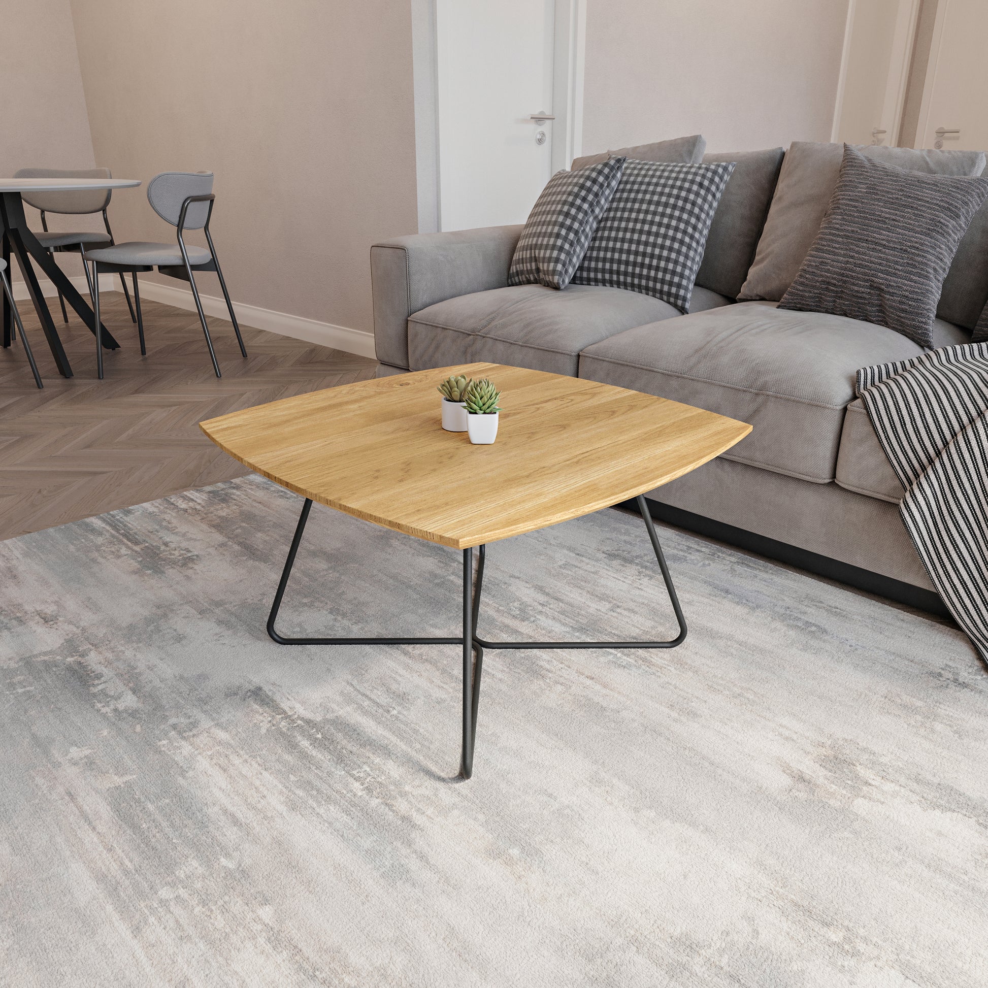 Lumarc Matera, Tavolino da Salotto fatto a mano in Legno Massello di Quercia Naturale e Acciaio dal Design Moderno Industriale Minimalista, Nero, Quadrato, 70x70x40 cm
